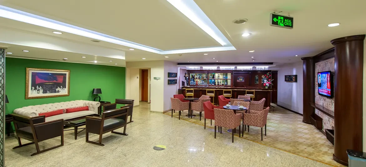 Tüm gün boyunca hoş sohbetler eşliğinde hafif atıştırmalıklar, tatlı ve pasta çeşitleri, yabancı , yerli soğuk ve sıcak içecek seçeneklerinin keyfini çıkarabilmeniz için lobby barımız hizmetinizde...